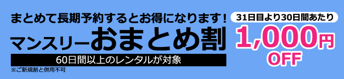 | 1ヶ月30日 | 6,600円(税込) 延長1日あたり220円 |