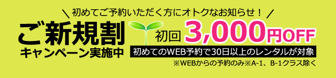 | 1週間7日 | 3,300円(税込) 延長1日あたり550円 |