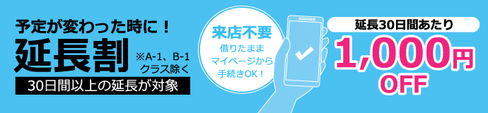 | 1ヶ月30日 | 6,600円(税込) 延長1日あたり220円 |
